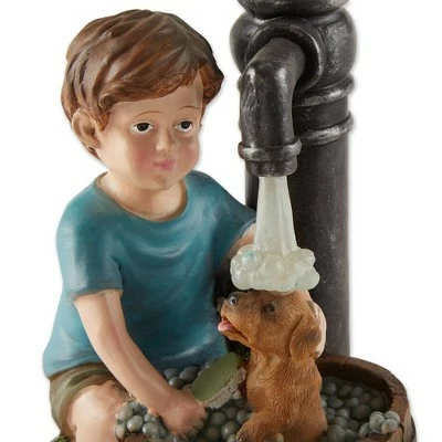- Make your garden look like a whimsical place filled with magic and wonder with this adorable statue of a boy giving his dog a bath. This solar powered light will provide a soft glow at night do light up this adorable statue.
