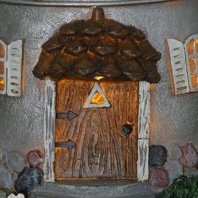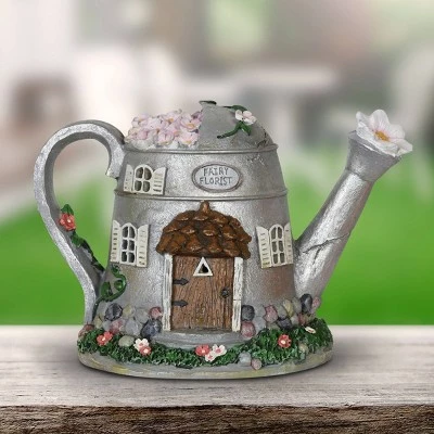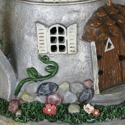 A fairytale Solar Tea Pot is transformed into an endearing fairy house complete with realistic wooden door, shutters and flower details! This charming Tea Pot will illuminate from within at dusk every evening, sparking intrigue and delight. An adorable addition to your home or garden!