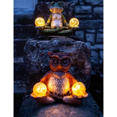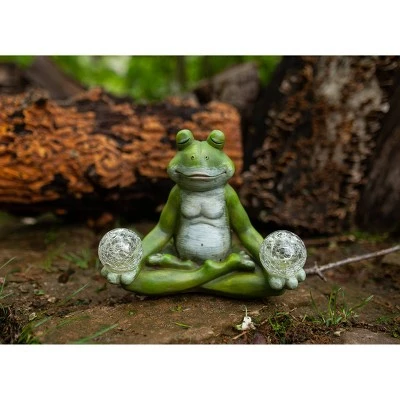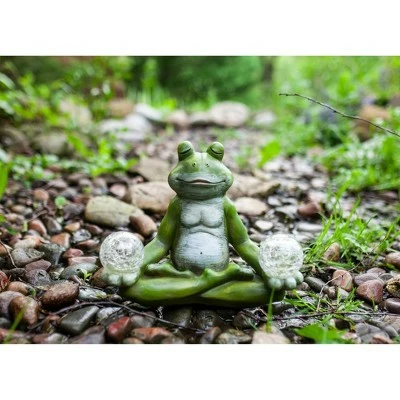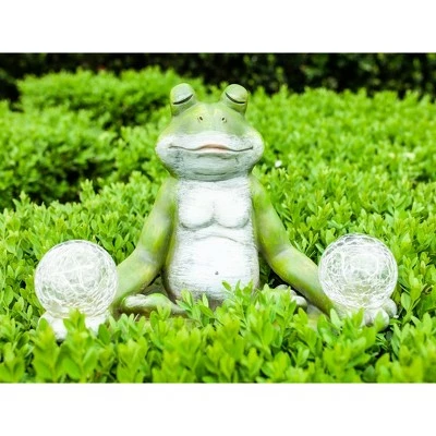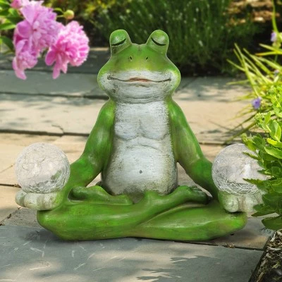 Get your zen on with this Illuminating Solar Yoga Garden Frog. As the sun sets and dusk settles in, the solar crackle balls will begin to glow. Beautifully hand painted garden statuary makes a great gift for the garden enthusiast and yogi alike.