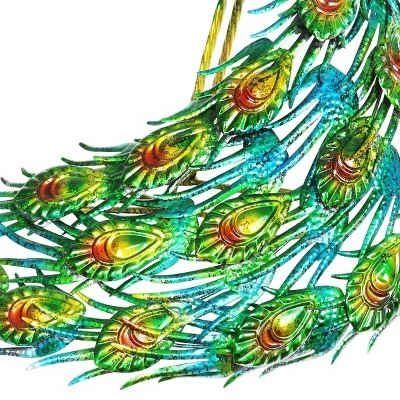 A symbol of royalty and confidence, this gorgeous metal standing peacock statuary makes a wonderful addition to any home or garden! Hand painted with beautiful detail, this peacock adds grace and elegance anywhere you place it. Safe for indoor or outdoor use.