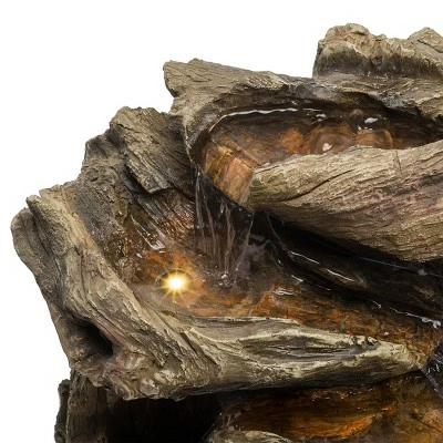 - STUNNING LIGHT DISPLAY: Beautiful accent lighting to feature the inner details of the natural looking wood fountain