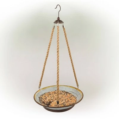 Provide a feeding station or a resting perch for your feathered garden visitors with this rustic and creative 30″ tall Hanging Metal Tray Bird Feeder with Rope from Alpine. This hanging bird feeder will add interest and charm to your yard or patio, while keeping feathered friends fed. The vintage-style metal bird feeder provides a sanctuary for feathered friends, and will add timeless charm to your outdoor living space or yard. Constructed from durable, weather-resistant metal, the bird feeder includes a rope and an attached hook to hang from a tree or your porch. Add the metal feeder to your backyard or porch and relax to the melodic sounds of birds chirping, while giving your lawn or garden visual interest. Its beautiful design attracts and invites your feathered friends to rest, feed, and migrate into your garden habitat, bringing life to your outdoor scenery. The birdhouse includes a 26″ long rope to hang your bird feeder and begin creating an outdoor home for sparrows, wrens, and more. All necessary parts for installation are included. This outdoor bird feeder measures 16″L x 16″W x 4″H and 30″ H with included rope, and includes a one year manufacturer’s warranty from date of purchase. Alpine Corporation is one of America’s leading designers, importers, and distributors of superior quality home and garden dΓ©cor products. Alpine’s award winning in-house design team continuously develops new and innovative “statements pieces” for your home and garden. Your outdoor living spaces will be the envy of the neighborhood with our wide assortment of fresh, fashionable and contemporary products, from beautifully crafted solar garden stakes featuring patented motion and fiber optic lighting technology to gorgeous glass and glow-in-the-dark birdbaths and feeders.