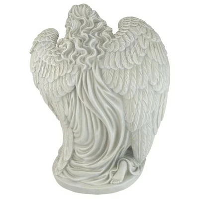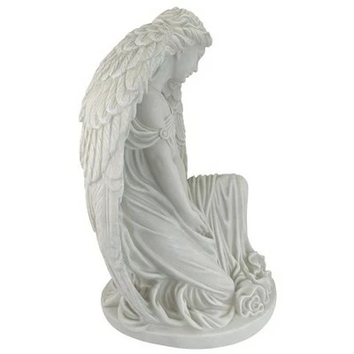 With the quiet countenance of a message sent from God, this guardian angel statue kneels with tranquil majesty. Exquisitely sculpted with details from draped gown to feathered wings, she will happily petition nature in a garden flower bed or provide a spot of quiet contemplation in your home.