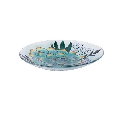 This botanical succulent embossed glass bird bath makes a vibrant statement in any garden, and is combined with a solar stand that illuminates the design. Crafted from durable materials, this bowl and stand set is outdoor safe and fade-resistant.