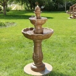 - Medium 2-tier outdoor flower blossom topped electric tiered water fountain