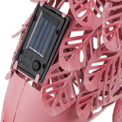 - Add a fun pop of color to your outdoor space with this pink lawn flamingo. The yard flamingo includes a solar panel on the back that lights up underneath the feathers for a whimsical garden display anytime of day. The iron frame features gorgeous feather-like details that will make guests take a second look.