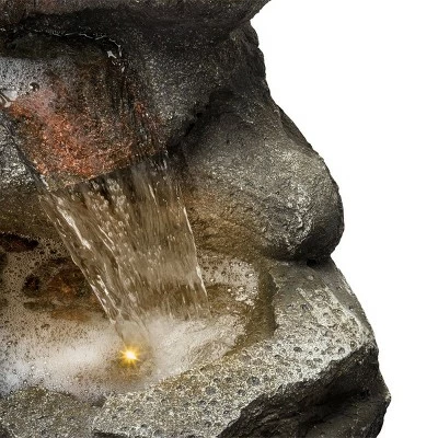 Enhance your outdoor living space with this 40″ tall Outdoor 4-Tier Rock Cascading Waterfall Fountain with LED Lights from Alpine Corporation. This cascading waterfall fountain provides a tranquil and soothing addition to your porch, backyard, or lawn. Constructed from durable polystone and fiberglass with a natural look and realistic textures, the fountain is weatherproof, rust-resistant, and resilient. This tall lawn statue will bring a touch of natural beauty to your outdoor space. Replicating natural rock and stone formations, the fountain becomes illuminated with the included LED lights, and is sure to make you feel like you’re sitting beside a majestic mountain waterfall. Relax to the sounds of the natural water flow as it cascades down from the top tier of the fountain through the tiers of rocks. Not only will the fountain provide you with serenity, it will also attract birds to your outdoor area, which in turn promotes healthy gardens. This majestic floor fountain provides an elegant addition to your courtyard, patio, or yard, and gives your garden visual interest with its natural waterfall style. For quick install and convenient operating, the fountain includes all necessary parts, as well as a pump, to begin creating an outdoor oasis. This standing fountain measures 24″L x 17″W x 40″H and includes a one-year manufacturer’s warranty from date of purchase.