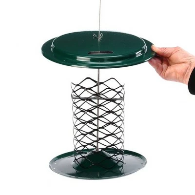 - DURABLE BIRD-FRIENDLY DESIGN: This bird feeder has a powder-coated, all steel construction means this feeder will withstand the elements and last for years Drainage holes at the bottom prevent flooding and the roof helps keep peanuts dry