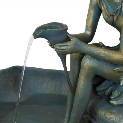 - Medium outdoor electric water fountain featuring a fairy seated on a shell