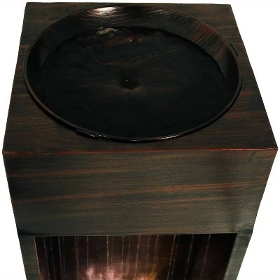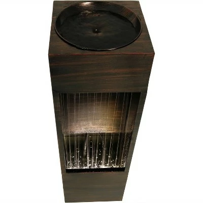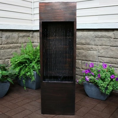 Add a modern and unique water feature to any outdoor living space with this outdoor fountain. Made of durable metal, this fountain works well with a variety of colors and styles of decor. This fountain has a continuous cascade of water that is perfect for soothing and relaxing after a long day. No plumbing or complicated installation is necessary, thanks to the included electric submersible pump. The fountain has a waterfall effect that is further enhanced with an LED light strip that highlights the falling water. Images include product in nighttime environment.