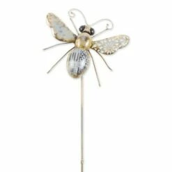 - Charming small bee garden stake is made of iron and measures 10.75×2.75×37 inches.
