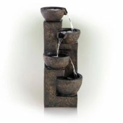 Budget 🥰 Alpine Corporation 52" Resin 5-Tier Log Waterfall Fountain with LED Lights Brown ⌛