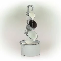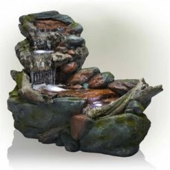 Cheap 🌟 Alpine Corporation 20" Resin Washtub 3-Tier Garden Fountain with LED Lights Silver 🎁