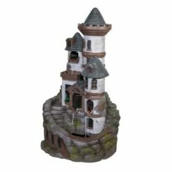 Deals 🤩 Alpine Corporation Alpine 14" Cascading Pillar Tabletop Fountain with LED Lights Gray 👏