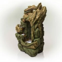 Outlet 😉 Alpine Corporation 55" Resin Side Tiering Rainforest Fountain with LED Lights Brown 👍