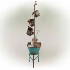 Promo 🔔 Rustic Wheelbarrow & Watering Can Multi Tier Metal Fountain – Alpine Corporation ✨