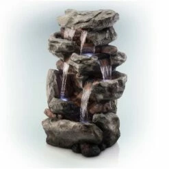 Promo 🛒 Alpine Corporation 52" Resin Rainforest Rock Tiered Fountain with LED Lights Bronze ✨
