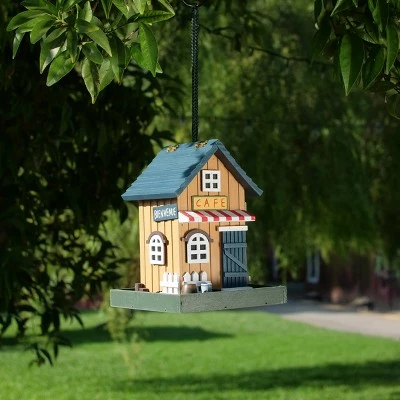 - OUTDOOR BIRD FEEDER: Colorful, hanging bird perch invites feathered friends of all sizes to feed from this adorable and vibrantly painted bird feeder replicated after a cafΓ©