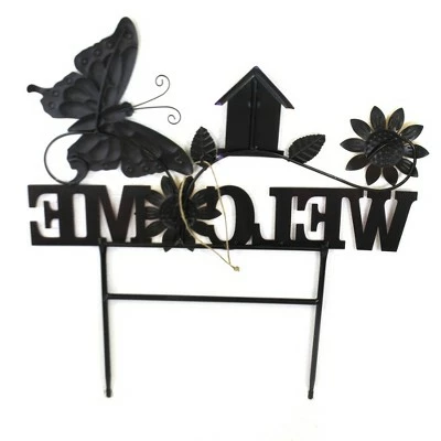 Welcome Your Guests To Your Lovely Home Or Patio With This Small But Tasteful Blue Butterfly Welcome Sign With Sun-Kissed Sunflowers And Brown Birdhouse.. New. Measurements 20.00 In H X 20.00 In W X 0.50 In D. . Made Of Metal. No Assembly Required. Indoor Or Outdoor Use. Imported