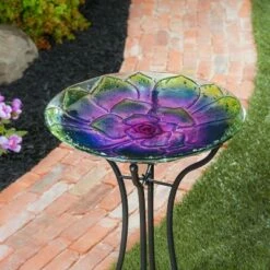 With a pebble texture and ombre succulent design, this embossed bird bath makes a beautiful addition to any outdoor space. Measuring 18 inches in diameter, the bird bath holds up to 64 oz of liquid. Stand sold separately.