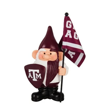 This garden gnome is made of polyresin and hand-painted in the Texas A&M team colors. It also comes with a real double-sided polyester suede flag on a pole in his hand. Can be used outdoors or indoors as a decorative accent.