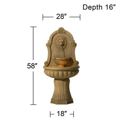 Create a calming environment with this two-tiered floor fountain that features a lion’s head and other traditional details. Water cascades gently from the lion’s mouth into an urn and then into the lower basin to create a pleasant look and sound. The looks of the fountain are enhanced at night with the halogen lit lower basin. This fountain is crafted from lightweight cast polyresin, so you can easily place this fountain inside or out.