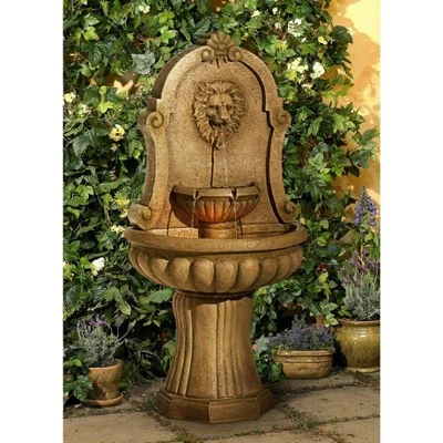 - Lion’s head floor fountain by John Timberland. Plug-in fountain design.
