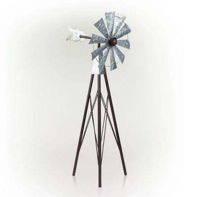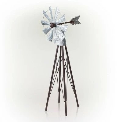 “Add a touch of ambience to your patio, lawn, or garden with the Alpine Bronze and Silver Metal Mini Windmill! This durable and colorful spinners are the perfect portable decor for lining your driveway, walkways, or planting beds to be easily seen and admired by passers-by. It’s sturdy iron construction allows it to last through any weather or season, making your outdoor area beautiful year-round. This wind spinner features multiple colors to provide a bright and stunning display. It is accented with two metal leaves to complete the floral appearance. Measuring 8″”L x 9″”W x 25″”H and weighing 5.06 lbs., the Alpine Bronze and Silver Metal Mini Windmill is the perfect addition to your garden decor.