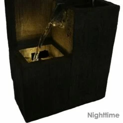Make any personal space a little more peaceful and tranquil with this indoor tabletop fountain from Sunnydaze Decor. Durably constructed of easy-to-maintain polyresin, this fountain features the attractive look and feel of real wood, but is easy to clean. Promote relaxation in the home or office with this easy-to-assemble fountain that doesn’t require any complicated plumbing or installation with the included electric submersible pump. The pump recirculates the water to the top of the fountain, where it flows down each tier into the basin below. The bottom basin features a built-in LED light that illuminates the flowing water, making this a great piece of decor to enjoy in the evening when the sun goes down. Images include product in nighttime environment.