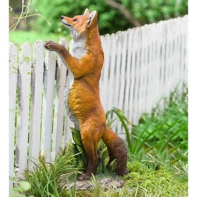 You’ll love having this Standing Fox Statue in your garden. Standing up on his hind legs, this curious fox is eager to see what’s on the other side of your fence. Perhaps he’s looking for greener pastures…or a snack! Stand him away from a wall and he appears to be begging for a treat. So cute! Cast in weather-resistant resin from a remarkably realistic original sculpt, this standing fox statue is painted in lifelike detail. Wind & Weather Exclusive Design.