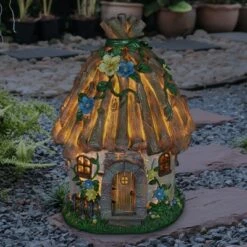This magical solar fairy house has a beautifully detailed twig roof and wood like front door! The little windows will light up, sparking wonder⦠what magical creatures could be flitting about inside? Sure to captivate your heart and add intrigue to any space!
