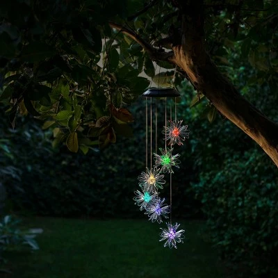 Relax outside to the delightful sound of the wind gusting creating the Alpine Corporation 28″ Outdoor Solar Powered 3D Floral Color Changing Mobile. The hanging mobile features a floral shapes with 6 color changing LEDs powered by solar energy. The mobile twirls and flows in the wind and provides a unique and decorative addition to your home’s exterior dΓ©cor on your patio, porch, or front door entryway. A half dozen color changing LED lights uses the sun to power energy during the day to light up the night for a bright, colorful display. The LEDs stay lit for up to 8 hours on one full charge and have an on/off switch for customized lighting. The color changing lights add visual interest to your garden or outdoor space, while you relax and enjoy a tranquil evening setting. All parts are included for a quick install and convenient operating. The dangling outdoor display measures 5″L x 5″W x 28″H to fit almost any outdoor space, and includes a one-year manufacturer’s warranty from date of purchase.