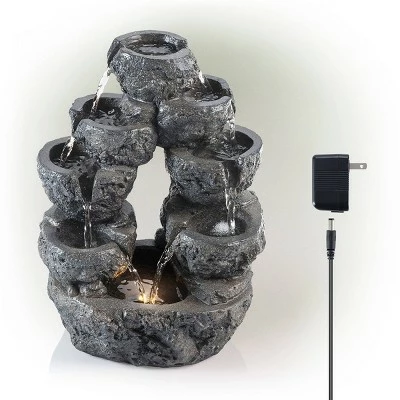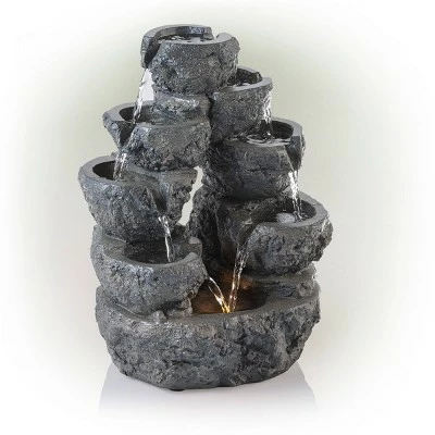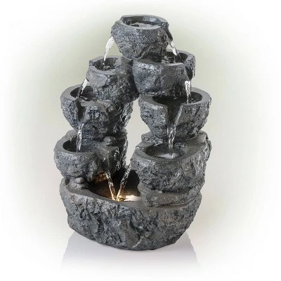 - OUTDOOR GARDEN DECOR: 5-tier cascading waterfall fountain lighted tabletop decor statue provides a tranquil and soothing addition to your outdoor living space, backyard, or lawn