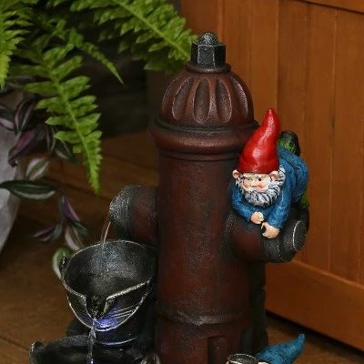 - Fire Hydrant Gnomes Outdoor Water Fountain with LED Light