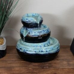 Add a piece of artisan style to your home with the 3-Tier Modern Textured Bowls Indoor Tabletop Fountain from Sunnydaze Decor. Constructed of ceramic with a smooth glaze, this tiered tabletop water feature has a beautiful combination of 2-tone colors with a rippled texture for added visual interest. Water gently flows from tier to tier into the basin below where it is recirculated via the electric submersible pump. This striking piece of indoor decor will make a welcome addition atop any table or desk.