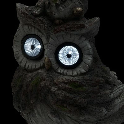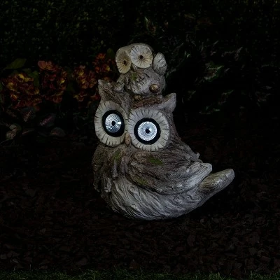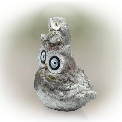 Welcome your house guests with the warm and inviting 15″ tall Outdoor Solar Powered Owl and Owlet Yard Statue with LED Lights from Alpine Corporation. This statue features a wide-eyed owl and its owlet that provide a unique and decorative playful addition to your home’s exterior dΓ©cor. The lighted yard art is powered by solar energy to keep your outdoor yard statue lit up and features a pair of warm white LED lights located in the adult owl’s eyes. Constructed from durable magnesia, the yard art is made tough for outdoor use and is weather-resistant for long-lasting, quality use on your porch, patio, or flowerbeds. Add one or multiple statues to create an enchanted garden display. The yard dΓ©cor is perfect for display on pathways, entryways, decks, courtyards, and outdoor living spaces. The outdoor garden statue measures 12″L x 9″W x 15″H to fit almost any outdoor space and includes a one-year manufacturer’s warranty from date of purchase.