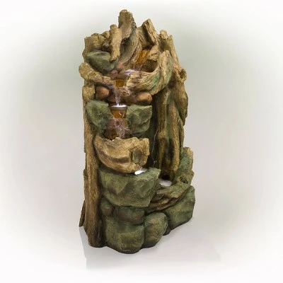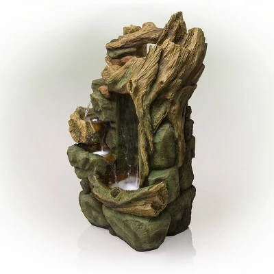 Enhance your outdoor living space with this 55″ Tall Outdoor Natural Cascading Waterfall Fountain with LED Lights from Alpine. This cascading waterfall fountain floor statue provides a tranquil and soothing addition to your porch, backyard, or lawn with its center sheet water fall and tiering side water falls. Constructed from durable resin, stone powder, and fiberglass with a natural stone and aged wood look, the fountain is weatherproof, rust-resistant, and resilient. This extra tall lawn statue will provide a tranquil and soothing addition to your homeโs backyard. Replicating a natural rainforest tree and stone waterfall, the fountain becomes illuminated with the included 30 cool white LED lights, providing you a nighttime escape to the great outdoors. Relax to the sounds of the natural waterfall flow as it cascades down the multiple tiers. Not only will the fountain provide you with serenity, it will also attract birds to your outdoor area, which in turn promotes healthy gardens. This classic and charming floor fountain provides an elegant addition to your courtyard, patio, or yard, and gives your garden visual interest with its rainforest design and natural waterfall style. For quick install and convenient operating, the waterfall fountain includes all necessary parts, as well as a pump, to begin creating an outdoor oasis. This standing fountain measures 34″L x 24″W x 55″H to fit almost any outdoor space and includes a one year manufacturer’s warranty from date of purchase. Alpine Corporation is one of America’s leading designers, importers, and distributors of superior quality home and garden dรฉcor products. Alpine’s award winning in-house design team continuously develops new and innovative “statements pieces” for your home and garden. Your outdoor living spaces will be the envy of the neighborhood with our wide assortment of fresh, fashionable and contemporary products, from beautifully crafted solar garden stakes featuring patented motion and fiber optic lighting technology to gorgeous glass and glow-in-the-dark bird baths and feeders.