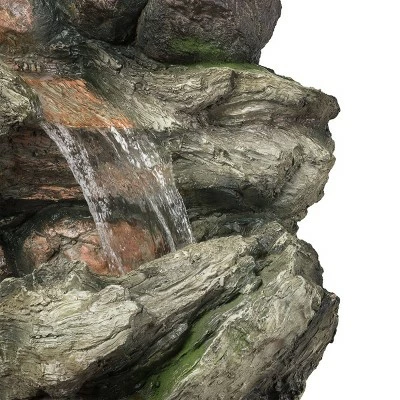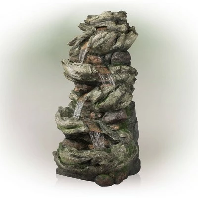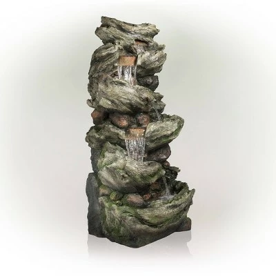 Enhance your outdoor living space with this 81″ Tall Outdoor 6-Tier Ancient Willow Water Floor Fountain with LED Lights from Alpine. This 6-tier cascading waterfall fountain floor statue provides a tranquil and soothing addition to your porch, backyard, or lawn. Constructed from durable polystone with fiberglass materials, this extra tall lawn fountain will provide a tranquil and soothing addition to your homeโs backyard. Replicating an ancient willow tree, the fountain becomes illuminated with the included 30 warm white LED lights, providing you absolute bliss and is sure to make you feel like youโre sitting beside a majestic mountain stream. Relax to the sounds of the natural waterfall flow as it trickles from the top tier of the fountain to the bottom tier. Not only will the fountain provide you with serenity, it will also bring a touch of calming nature to your outdoor area. This classic rainforest charming floor fountain provides an elegant addition to your courtyard, patio, or yard, and gives your garden visual interest with its timeless design and natural waterfall style. For quick install and convenient operating, the waterfall fountain includes all necessary parts, as well as a pump, to begin creating an outdoor oasis. This standing fountain measures 42″L x 33″W x 81″H to fit almost any outdoor space and includes a one-year manufacturer’s warranty from date of purchase.