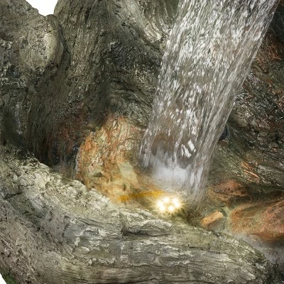 - RAINFOREST-INSPIRED: Water cascades over natural-looking weathered wood