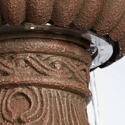 Romance and nature blend beautifully in this three-tier LED lighted floor water fountain. Ideal for a garden element or patio space, its shapely silhouette and natural stone finish mix with mood lighting that creates elegant nighttime effects. A detail-rich, artisanal design borrows from stately European fare. Holding five to six gallons of water, its energy-efficient light modules deliver an output of 120 volts.
