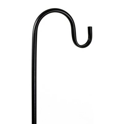 Elevate your gardenβs look with this unique shepherdβs hook. With a classic hook end and two-pronged base for easy installment, this is the perfect way to display your hanging plants. The sturdy rust-resistant metal will stand up to all weather types.Product Features:Black metal shepherdβs hook garden stakeSturdy design to support the weight of plantersPointed stakesWeather resistant Recommended for outdoor use onlyDimensions: 36βHMaterial(s): weather resistant metal