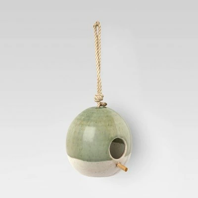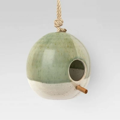 Add an adorable accent to your yard or patio with this Stoneware with Reactive Glaze Birdhouse from Smith & Hawkenβ’. This decorative and functional birdhouse will complement any outdoor dΓ©cor theme, but other stoneware pieces will help you create a cohesive look. This round birdhouse with small opening for the birds to enter and leave has a reactive glaze for a pottery look. The attached rope loop is the perfect way to hang this birdhouse from a hook, nail or tree branch.