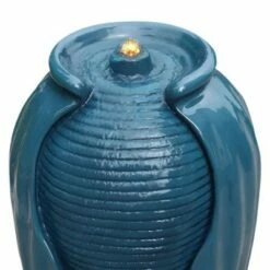 Cheapest π 31.89″ Glazed Vase Outdoor Floor Fountain with LED Light – Teamson Home Blue π