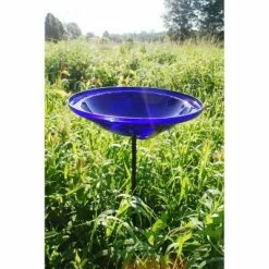 Best Pirce π₯° 3″ Iron and Crackle Glass Birdbath Bowl with Stake – ACHLA Designs Cobalt Blue π