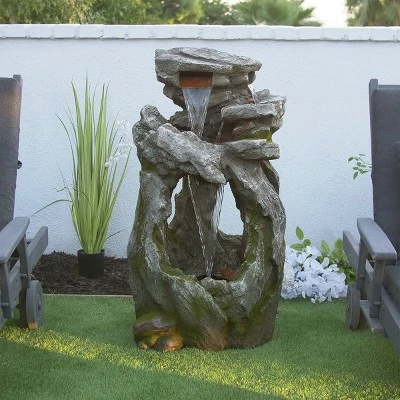 - VERSATILE GARDEN DΓCOR WITH LED LIGHTS: Cascading rainforest waterfall floor fountain with long-lasting LED lights provides a tranquil and soothing addition to your outdoor and indoor living space, porch, or lawn
