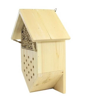 Wonderful Bee Boarding House With Two Chambers To Accommodate Bees And Ladybugs. Top Section Is Filled With Bamboo Tubes And The Bottom Sections Has Several Quarter Inch Holes Drilled Through The Wood.. New. Comes Packaged In A Box.. Measurements 10.5 In H X 7.5 In W X 5.0 In D. . Made Of Wood. No Assembly Required. Outdoor Use Only. Imported