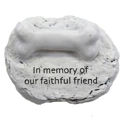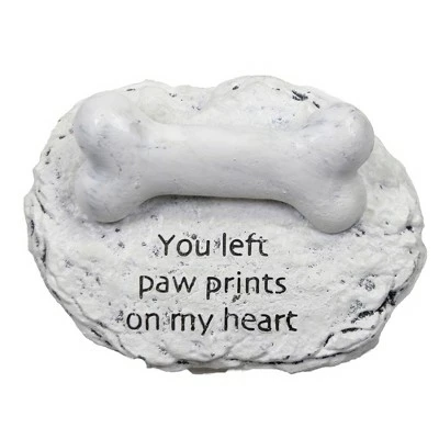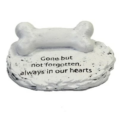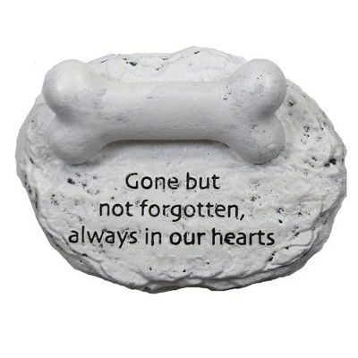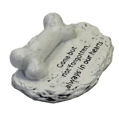 White-Washed Flat Stone-Like Figurine With A Dog Bone Attached To The Top. The Bone Is A Great Place To Personalize With A Name Or Date. Easy To Do, Just Use A Permanent Felt Tip Marker.. New. Measurements 1.25 In H X 4.0 In W X 3.0 In D. . Made Of Polyresin. No Assembly Required. Indoor Or Outdoor Use. Imported