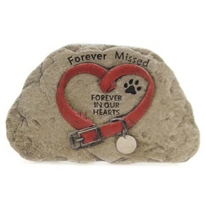 A Red Collar With A Hang Name Tag Lays Softly On The Top Of A Flat Rock. ” Beloved Pet & Forever Friend, Loved & Missed” Accented In Black Is Etched Into The Rock Along With A Paw Imprint.. New. Measurements 6.5 In H X 10.5 In W X .5 In D. . Made Of Polyresin. No Assembly Required. Indoor Or Outdoor Use. Imported