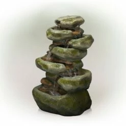 Wholesale β Alpine Corporation 47" Resin Mossy Cascading Rock Fountain and LED Lights Gray βοΈ