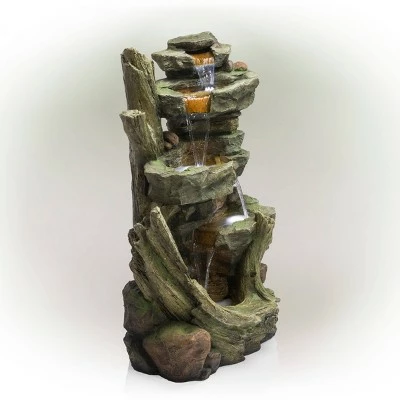 “Relax and enjoy the sounds of nature with the Alpine Cascading Stone Tower Fountain with LED Lights! You will feel like you are sitting next to a majestic forest river stream in the great outdoors all while relaxing in your own backyard. It has a 10L capacity and features an internal pump that keeps the water flowing – just plug it in! This outdoor fountain looks great in your garden, patio, deck, porch, or yard space. Take in the tranquil sounds of the water gently cascading over natural-looking stone. The polyresin, stone powder, plastic, and fiberglass construction is weather-proof, rust-resistant, and durable for years of quality use. The 24 cool white LED lights illuminate your space, drawing attention to the relaxing water pools day or night for added ambiance. With a 1-year warranty, you can be confident in the quality of your purchase. The Alpine Cascading Stone Tower Fountain with LED Lights measures 21″”L x 15″”W x 39″”H for use in yards of any size.